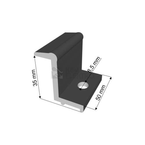 Černě eloxovaný hliníkový úchyt panelu, který se používá jako krajní úchyt panelů k nosnému H profilu. Délka 50 mm, vhodný pro solární panely s výškou hrany 35 mm.