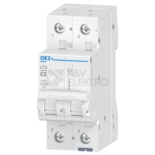 Jistič In 2 A, Ue AC 230/400V/DC 120V, charakteristika C, 2pól, Icn 10 kA