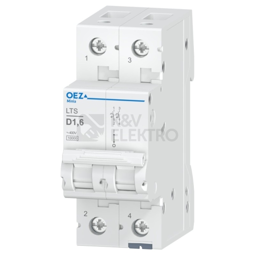 Jistič In 1,6 A, Ue AC 230/400V/DC 120V, charakteristika D, 2pól, Icn 10 kA