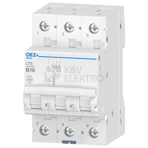 Jistič In 10A, Ue AC 230/400V/DC 180V, charakteristika B, 3pól, Icn 10 kA