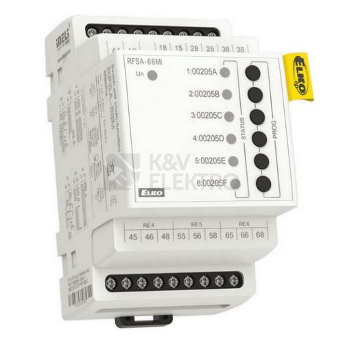 RFSA-66M: spínací prvek se 6 výstupními kontakty 8 A slouží pro nezávislé ovládání až 6 spotřebičů, zásuvek nebo světel.- 3 modulové provedení prvku s montáží do rozvaděče - každý z výstupů může být ovládán až 25 kanály- součástí balení je interní anténa AN-I, v případě umístění prvku do plechového rozvaděče pro zlepšení signálu můžete použít externí anténu AN-ERFSA-66MI: stejné provedení a funkce jako RFSA-66M, ale s integrovanou anténou. Je vhodný pro umístění do rozvaděčů s plastovými dveřmi. 6 funkcí: tlačítko, impulsní relé a časové funkce zpožděného rozběhu nebo návratu s časovým nastavením 2 s - 60 min.Programovací tlačítko na prvku slouží také jako manuální ovládání výstupu.Možnost nastavení stavu paměti při výpadku napájení.