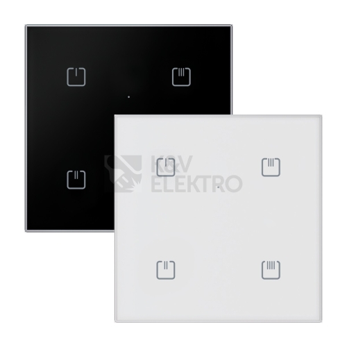 Skleněný dotykový ovladač je designovým prvkem systému RF Control a je k dispozici v elegantní černé a bílé variantě.• Tloušťka pouhých 8 mm.• RFGB-20: 2 kapacitní tlačítka umožňují ovládat 2 prvky.• RFGB-40: 4 kapacitní tlačítka umožňují ovládat 4 prvky.• Po stisku tlačítka vysílá nastavený povel (ON/OFF, stmívání, časové vypnutí/zapnutí, vytažení/zatažení). Vysílání povelu je indikováno červenou LED.• Možnost nastavení scén, kdy jedním stiskem ovládáte více prvků iNELS RF Control.• Zadní základna umožňuje přišroubování na instalační krabici, přilepení oboustrannou páskou nebo pouhé položení na stůl.• Bateriové napájení (2x 3 V baterie CR 2032 - součást balení) s životností cca 2 roky dle četnosti užívání.• Dosah až 200 m (na volném prostranství), v případě nedostatečného signálu mezi ovladačem a prvkem použijte opakovač signálu RFRP-20 nebo prvky s protokolem RFIO2, které tuto funkci podporují.• Komunikační frekvence s obousměrným protokolem RFIO.