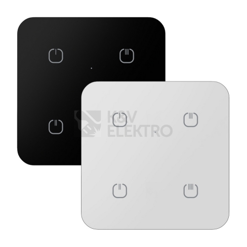 Skleněný dotykový ovladač je designovým prvkem systému RF Control a je k dispozici v elegantní černé a bílé variantě.• Tloušťka pouhých 8 mm.• RFGB-220: 2 kapacitní tlačítka umožňují ovládat 2 prvky.• RFGB-240: 4 kapacitní tlačítka umožňují ovládat 4 prvky.• Po stisku tlačítka vysílá nastavený povel (ON/OFF, stmívání, časové vypnutí/zapnutí, vytažení/zatažení). Vysílání povelu je indikováno červenou LED.• Možnost nastavení scén, kdy jedním stiskem ovládáte více prvků iNELS RF Control.• Zadní základna umožňuje přišroubování na instalační krabici, přilepení oboustrannou páskou nebo pouhé položení na stůl.• Bateriové napájení (2x 3 V baterie CR 2032 - součást balení) s životností cca 2 roky dle četnosti užívání.• Dosah až 200 m (na volném prostranství), v případě nedostatečného signálu mezi ovladačem a prvkem použijte opakovač signálu RFRP-20 nebo prvky s protokolem RFIO2, které tuto funkci podporují.• Komunikační frekvence s obousměrným protokolem RFIO.