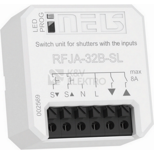 Spínací prvek pro žaluzie má 2 výstupní kanály sloužící k ovládání garážových vrat, bran, žaluzií, markýz…Lze je kombinovat s Ovladači nebo Systémovými prvky iNELS RF Control.Provedení BOX nabízí montáž přímo do instalační krabice, podhledu nebo krytu pohonu motoru.RFJA-32B/230V: připojení spínané zátěže 2x 8 A (2x 2000 W), s možností připojení stávajících drátových tlačítek.Krátké stisky ovladače umožnují naklápění lamel, dlouhý stisk vytažení / zatažení žaluzií do koncové polohy.Každý prvek může být ovládán až 25 kanály (1 kanál představuje jeden přiřazený ovladač).Programovací tlačítko na prvku slouží také jako manuální ovládání výstupu.U prvků lze nastavit funkci opakovače (repeateru) prostřednictvím servisního zařízení RFAF/USB.Dosah až 200 m (na volném prostranství), v případě nedostatečného signálu mezi ovladačem a prvkem použijte opakovač signálu RFRP-20 nebo prvky s protokolem RFIO2, které tuto funkci podporují.Komunikační frekvence s obousměrným protokolem iNELS RF Control2 (RFIO2).Materiál kontaktu relé AgSnO2.