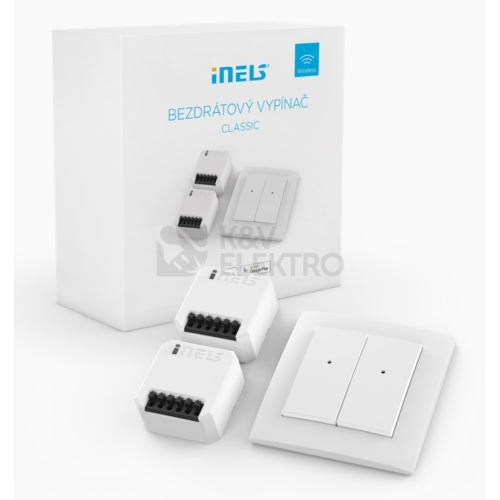 Bezdrátový vypínač - classic Kombinace iNELS nástěnného bezdrátového ovladače a spínacího prvku pro univerzální použití. Slouží pro ovládání elektrických spotřebičů, světel, zásuvek, garážových vrat apod. Ovládač: Bezdrátový ovladač elektrických spotřebičů a zásuvek - ovládání spínač, světel, závor, vrat, žaluzií, apod. 4 tlačítka - ovládá nezávisle na sobě 2 nebo 4 prvky (v návaznosti na typ spínacího prvku). Rychlá instalace na jakýkoliv povrch (nalepením nebo našroubováním na instalační krabici). Spínač Spínací prvek s 1 výstupním kanálem slouží k ovládání elektrických spotřebičů, zásuvek, světel, apod. Provedení BOX - montáž do instalační krabice, podhledu nebo krytu ovládaného spotřebiče. Připojení spínaných zátěží do 8 A (2000 W). Jednofunkční provedení - sepnout / vypnout Výstup na spínacím prvku může být ovládán až 25 kanály (1 kanál představuje jedno tlačítko na ovladači).. Programovací tlačítko, slouží také jako manuální ovládání výstupu. Možnost nastavení stavu paměti při výpadku proudu. U prvků lze nastavit funkci opakovače (repeatru) prostřednictvím servisního zařízení RFAF/USB. Komunikační frekvence s obousměrným protokolem iNELS RF Control2 (RFIO2).