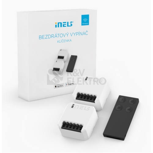 Bezdrátový vypínač - klíčenka Kombinace iNELS nástěnného, spínacího prvku a klíčenky pro univerzální použití. Slouží pro ovládání elektrických spotřebičů, světel, zásuvek, garážových vrat, apod. Ovladač: Ovladač ve formě klíčenky - ovládání spínače světel, závor, vrat, žaluzií, apod. 4 tlačítka umožňují nezávisle ovládat až 4 prvky. Bateriové napájení (3V/CR2032 - součástí balení) s životností cca 5 let dle četnosti užívání. Spínač: Spínací prvek s 1 výstupním kanálem slouží k ovládání elektrických spotřebičů, zásuvek, světel, apod. Provedení BOX - montáž do instalační krabice, podhledu nebo krytu ovládaného spotřebiče. Připojení spínaných zátěží do 8 A (2000 W). Jednofunkční provedení - sepnout / vypnout Výstup na spínacím prvku může být ovládán až 25 kanály (1 kanál představuje jedno tlačítko na ovladači) Programovací tlačítko, slouží také jako manuální ovládání výstupu. Možnost nastavení stavu paměti při výpadku proudu. U prvků lze nastavit funkci opakovače (repeatru) prostřednictvím servisního zařízení RFAF/USB. Komunikační frekvence s obousměrným protokolem iNELS RF Control2 (RFIO2).
