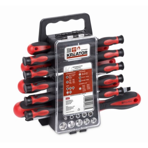 Šroubováky:Ploché: SL3.0(75mm), SL5.0(75mm), SL8.0(150mm)Phillips: PH0 (75mm), PH1 (75mm), PH2 (100mm), PH3 (150mm)Precizní šroubováky:Torx: T5, T6, T7, T8, T9, T10Ploché: SL2.5, SL3.0Phillips: PH#00,PH#0Bity: 4x plochý 4x phillips 2x pozidriv 4x torx 2x čtvercovýMagnetický držák bitůAdaptérNástrčné hlavice 1/4:5mm,6mm,7mm,8mm,9mm,10mm,11mm,12mm,13mmMagnetické konce