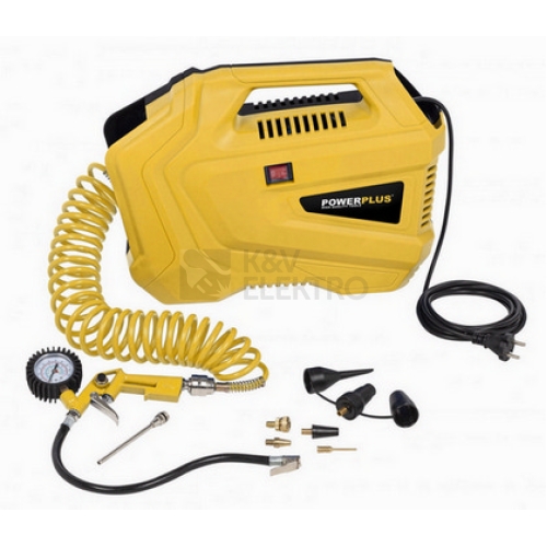 Bezolejový kompresor 1100W + 11ks příslušenství Technické příslušenství: Napětí 220 - 240V / 50Hz Příkon 1.100 (S3:15%) W / 1,5HP Otáčky naprázdno 3.750 min-1 Max. tlak 8 bar Sací výkon 180 l/min Délka el. kabelu 3 m Hmotnost 5,2 kg Důležité vlastnosti: Bezolejový Snadno přenosný Vhodný i pro lehčí práci Ideální pro huštění pneumatik, gumových hraček, nafukovací matrace a míče Bohaté příslušenství Držadlo pro snadné přenášení Bezpečnostní ventil zabraňující přetížení Obsah balení: 1x kompresor 1x tlaková hadice 3m 1x hustící pistole s manometrem 9ks nástavců
