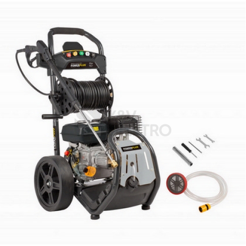 Benzinová tlaková myčka s čerpadlem 210cc 270bar Díky výkonnému benzínovému motoru o objemu 210 ccm zvládne tlakový čistič POWXG9100 POWERPLUS i ty nejnáročnější práce. Čtyřtaktní motor poskytuje výkon až 5100 W. Průtok vody 540 litrů za hodinu a maximální tlak až 270 barů zajišťují vždy čistý výsledek. Je to ideální benzinová tlaková myčka pro nejnáročnější úkoly. Čištění teplou vodou je možné, protože tlakový čistič vydrží teploty až 60st C. Integrovaná nádrž na čisticí prostředek zajišťuje nejčistší výsledky. POWXG9100 je vybaven vysoce kvalitním měděným čerpadlem, které zajišťuje lepší výkon a prodlužuje životnost tlakové myčky. Zařízení lze připojit k běžnému vodovodnímu řádu, ale je také vybaveno režimem sání. Při použití tohoto režimu lze 2 metry dlouhou hadici použít k čerpání vody z kbelíků, rybníků a studní. Díky obtokovému systému je tlakový čistič bezpečným nástrojem pro čištění. Když se uvolní spoušť tlakové myčky, voda bude přiváděna samostatným obtokovým okruhem. Tam se čerpá čerpadlem při konstantním tlaku 10 bar. Tím se zabrání prasknutí hlavy čerpadla tlakové myčky v důsledku přetlaku a motor se nevypne při každém uvolnění spouště. Vzhledem k 3litrové benzinové nádrži není třeba otravných prodlužovacích kabelů. 20 metrů dlouhá tlaková hadice poskytuje potřebnou volnost pohybu. Kromě toho je tlaková myčka připevněna na robustním podvozku se dvěma koly, takže jej lze snadno přepravovat. Technické parametry: Obsah motoru 210 ccm Výkon motoru 5,1 kW Typ motoru Powerplus OHV čtyřtaktní benzinový (ECO DRIVER POWER) Otáčky naprázdno 3.600 min-1 Max. tlak 270 bar Průtok 540 l/h Palivová nádrž 3 L Integrovaná nádrž na čisticí prostředek 6 l Max. teplota vody 60°C Délka hadice 20 m Hmotnost 34 kg Jmenovitý(pracovní) tlak 170 bar Důležité vlastnosti: Vysoce kvalitní měděné čerpadlo Dlouhá životnost čerpadla Vylepšený výkon motoru Přepravní kola pro snadnou manipulaci Nádržka na čisticí prostředky Funkce samonasávacího čerpadla Tepelný přetlakový ventil Funkce ochrany teploty vody Hadicový naviják Měkčená rukojeť Obsah balení: 1x tlaková myčka 1x vysokotlaká hadice 4x rozprašovací tryska / 1x tryska na saponát 1x pistole s ocelovým nástavcem 1x samonasávací hadice 2m 1x čisticí jehla Sada klíčů