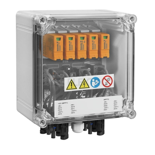 Propojovací skříň pro fotovoltaické aplikace 1100V, 2 stringy / 1 výstup na MPPT Přepěťová ochrana I / II, WM4C