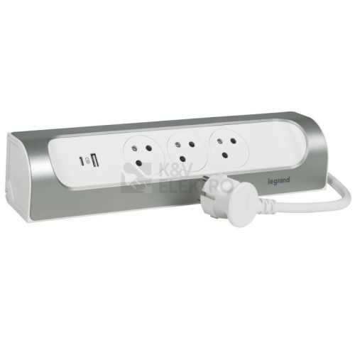 Zásuvkový blok rohový 3x2P+T/USB A+C, kabel 1m, bílá/hliník