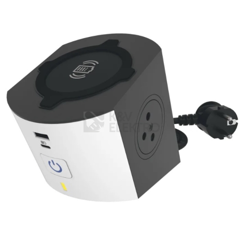 Zásuvkový blok 2x2P+T/USB A+C s bezdrátovou indukční nabíjecí plochou, bílá/tmavě šedá
