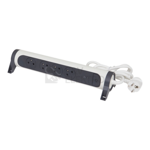 Prodlužovací přívod s válcovým otočným tělem 4x2P+T, přepěťová ochrana, podsvětlené tlačítko vyp/zap, kabel 1,5m, bílá/tmavě šedá