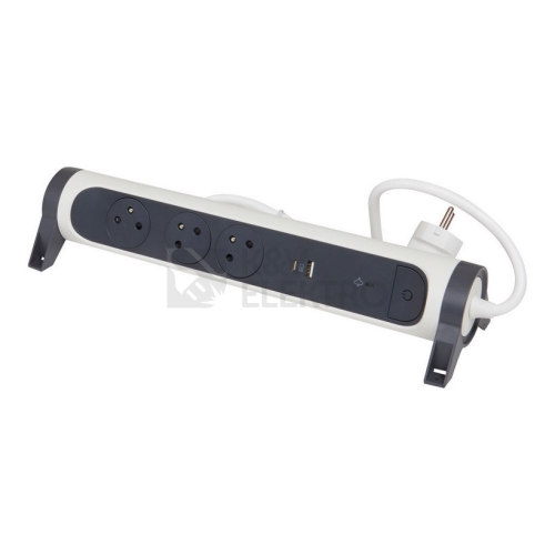 Prodlužovací přívod s válcovým otočným tělem zásuvka 4x2P+T, nabíječka USB A+C, přepěťová ochrana, podsvětlené tlačítko vyp/zap, kabel 1,5m, bílá/tmavě šedá