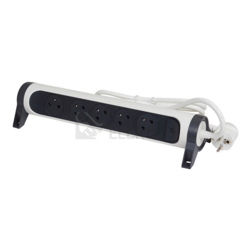 Prodlužovací přívod s válcovým otočným tělem zásuvka 5x2P+T, podsvětlené tlačítko vyp/zap, kabel 1,5m, bílá/tmavě šedá
