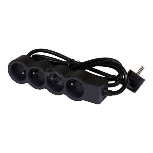 Prodlužovací přívod zásuvka 4x2P+T, kabel 1,5m, černá/tmavě šedá