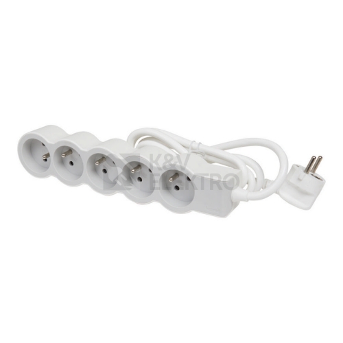 Prodlužovací přívod zásuvka 5x2P+T, kabel 3m, bílá/světle šedá