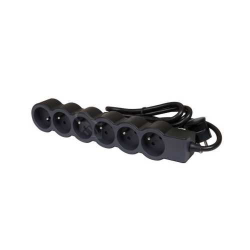 Prodlužovací přívod zásuvka 6x2P+T, kabel 3m, černá/tmavě šedá