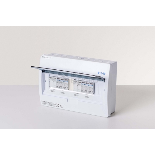 Kompletní certifikovaný rozvaděč chránící DC vedení o max. napětí 1000V. Tento typ je určen pro povrchovou montáž a obsahuje dvoupólový pojistkový odpojovač a svodič přepětí pro ochranu dvou stringů fotovoltaického systému. Jednotlivé komponenty umístěné na DIN liště jsou mezi sebou již propojeny, což zajišťuje úsporu času při montáži. Složení: 1x Rozvodnice na omítku, průhledné plast. dveře, 1 řada, 12 modulů (výrobce EATON) 2x Svodič přepětí T1+T2 (I+II, B+C), fotovoltaická aplikace 1000V DC, max. zkrat. proud 1000A (výrobce EATON) 4x Ultra rychlá válcová pojistka pro fotovoltaiku, (norma UL), 10 x 38mm, 1000V DC. 16A (výrobce EATON/ETI/OEZ) 2x Pojistkový odpojovač, fotovoltaické aplikace, 2-pole, 1000V AC / 30A, C10 (10 x 38mm) CHPV2U (výrobce EATON)