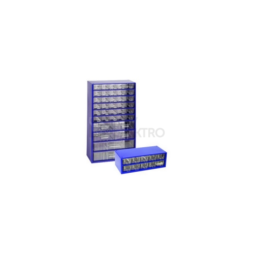 Set se skládá ze dvou skříněk 6765 + 6737:materiál: kov, plastbarva: modrá Set kovových ukládacích skříněk s plastovými zásuvkami 1 velikosti je vhodný pro přehledné skladování drobných předmětů a součástek.