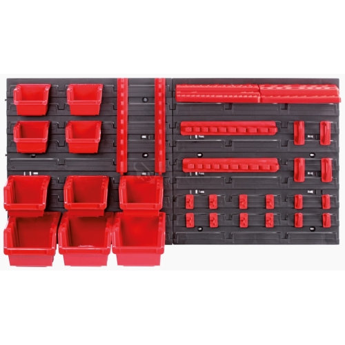 Závěsný systém + 10 boxů a 22 držáků na nářadí ORDERLINE 800 x 195 x 400 mm. Univerzální panel na nářadí ORDERLINE, který lze připevnit na stěnu, je nepostradatelným a velmi užitčeným pomocníkem v domě, garáži či dílně.