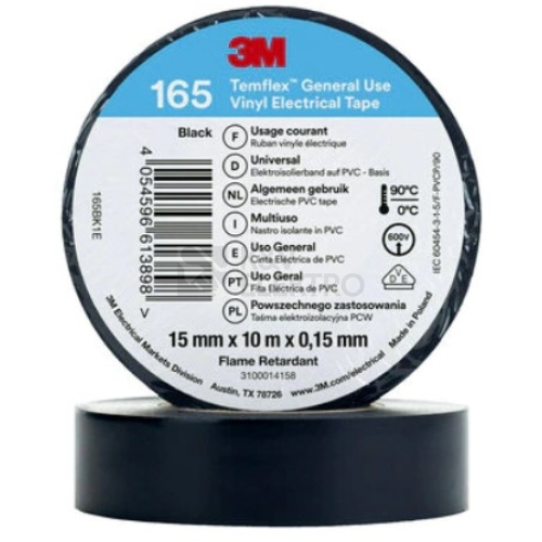 Elektrikářská izolačka Temflex165 má tloušťku 0,15 mm a jde o PVC izolační pásku pro všeobecné použití. 3M Temflex 165 Vinylová elektrotechnická páska je určena pro základní izolaci pro všechny nízkonapěťové vodiče a kabelové spoje a také na opravy a svazkování vodičů a kabelů. Tato profesionální páska má vylepšenou funkčnost a je vhodná pro vnitřní i venkovní použití. Páska je vhodná ke stahování vodičů a má dobrou odolnost vůči oděru, kyselinám, zásadám a proměnlivým povětrnostním podmínkám, včetně slunečního svitu. Zachovává si vysokou úroveň výkonu při teplotě okolního prostředí až 90 °C. Páska je k dispozici ve standardních barvách. Dobrá odolnost vůči prodření, vlhkosti, zásadám, kyselinám a různým povětrnostním vlivům (včetně slunečního světla). Je dostupná ve standardních průmyslových barvách Vysoká elektrická odolnost Profesionální páska vhodná pro vnitřní i venkovní použití K dispozici ve standardních barvách IEC 60454-3-1-5/F-PVCP/90