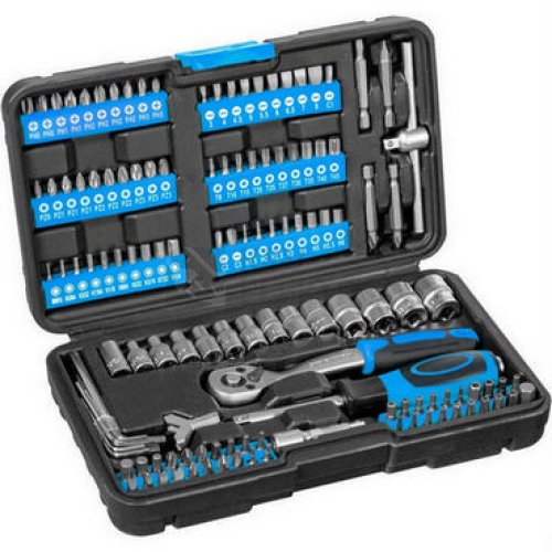 Tato 130 dílná sada nářadí od Güde obsahuje komplexní sortiment 100 ks různých typů bitů, včetně bitového šroubováku, bitový adaptér 6,3 mm (1/4"), ráčnu 1/4" se 72 zuby, prodloužení, vratidlo a 13 nástrčných hlavic, praktický hákový (Y-bit) a 4 dlouhé bity. Vše je bezpečně uloženo v praktickém plastovém boxu. 130dílná sada nářadí z chromvanadiové oceli v praktickém úložném boxu. 1 ráčna 1/4" (72 zubů) + prodloužení délky 2" 1 vratidlo 1/4" 13 nástrčných hlavic 1/4": 4, 4,5, 5, 5,5, 6-14 mm 1 šroubovák na bitový adapter 1 bitový adaptér 6,3 mm (1/4“) 1 bit Y (hákový klíč) 7 imbusových klíčů: 1,27, 1,5, 2, 2,5, 3, 4, 5 mm 100 bitů 6,3 mm (1/4"), různé typy 2 dlouhé bity (50 mm): ploché SL4 a SL6 2 dlouhé bity (50 mm): křížové PH1 a PH2 Rozměry boxu (d x š x v): 242 x 140 x 55 mm Hmotnost netto/brutto: 1,5 kg/1,52 kg