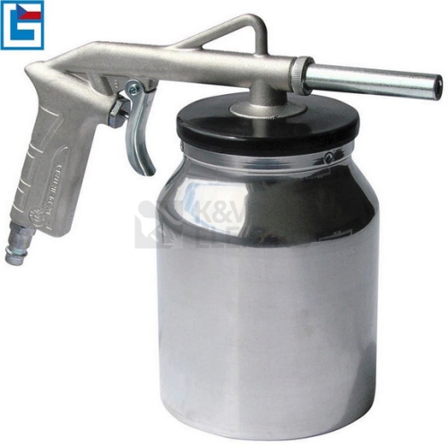 Tryskací pistole, určená k odrezování/zdrsňování/matování menších ploch, odstraňování zbytků nátěrů apod. Konstrukce: korpus pistole/nádobka z hliníku, víko s bajonetovým závitem, tryska z tvrzené oceli (-> délka: 6 cm, průměr: 5 mm). Příslušenství: vsuvka 1/4''. Doplňkové příslušenství: náhradní tryska (41062).
