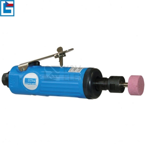 Vysokootáčková bruska, určená k broušení, frézování, leštění nebo gravírování v prostředí zámečnických, dřevozpracujících, modelářských dílen apod. Plynulá regulace otáček pomocí ovládací páčky. Konstrukce: upínací kleštiny (-> 2, vnitřní průměr: 3/6 mm), ovládací páčka s bezpečnostní pojistkou, ergonomicky tvarovaná rukojeť se sítkem pro filtraci stlačeného vzduchu/průduchy zpětného odtahu odpadního vzduchu. Složení sady: brusné kolíky různých tvarů/zrnitostí (10), vsuvka 1/4'', montážní klíče, transportní plastový kufřík.