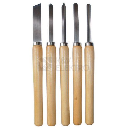 Sada soustružnických dlát, určených pro práci se dřevem v podmínkách domácích dílen, chat, chalup apod. Konstrukce: protáhlá dřevěná rukojeť (-> délka: 245 mm), pracovní ocelová část (-> délka: 100 mm), různé tvary ostří.