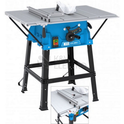 Praktická stolní pila, určená k přesnému řezání stavebního dřeva nebo dřevotřískových (dřevovláknitých) desek v podmínkách domácích dílen. Přímé a příčné řezy do lišt, latí, desek, hranolů apod. (max. řezný výkon: 87 mm) • řezy na pokos (dvojitý pokos) v rozsahu 90 - 45°. Plynulé nastavení řezné výšky (úhlu sklonu) pilového kotouče ruční klikou • boční nástavce stolu pro rozšíření pracovní plochy na (až) 925 x 630 mm. Motor 2.000 W/P1 (provozní režim: S6/25%), 1,65 m síťový kabel H05 VV-F. Konstrukce: skříň pily z tvrzeného plastu, ocelový stůl 545 x 630 mm (s milimetrovou stupnicí), kryt pilového kotouče, podélný doraz, úhlové pravítko, přípojka odsávání, stabilní podstavec (vč. opěrek proti překlopení). Příslušenství: pilový kotouč s břitovými plátky ze slinutého karbidu (250 x 30 x 2,8 mm - 24 z), posunovací tyč. Celkové rozměry (d x š x v): 545 (925) x 630 x 870 mm, hladina akustického výkonu LWA: 106,2 dB (A), stupeň krytí: IP 20.