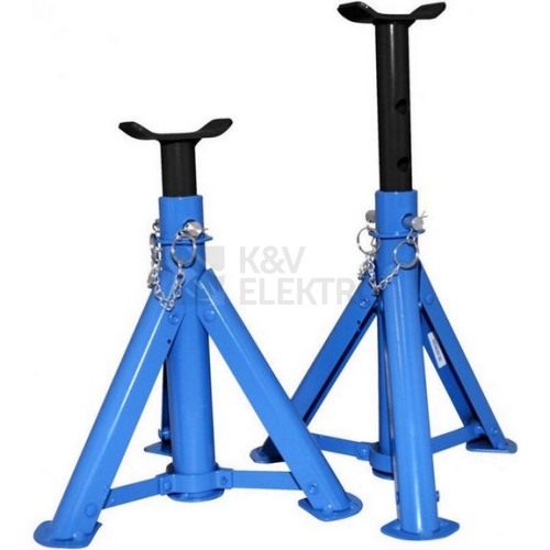 Praktické ocelové podpěry, určené pro použití v garážích, dílnách, při montážích, na stavbách apod. Nastavení pracovní výšky pomocí zástrčných kolíků. Konstrukce: stabilní ocelové stojany, sklopné opěrné nohy, polohovací kolíky s řetízkem a závlačkou. Celkové rozměry (d x š x v): 240 x 240 x 250 mm.