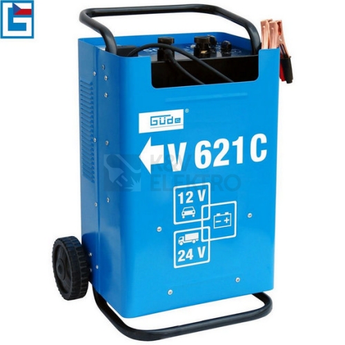 Nabíječka baterií se startovacím zdrojem, určená ke standardnímu/rychlému nabíjení olověných akumulátorů motorových vozidel s napětím 12 nebo 24 V. Různé provozní režimy nabíjení podle kapacity/aktuálního stavu akumulátoru (-> 6-stupňové nastavení nabíjecího proudu pro standardní nebo zrychlené nabíjení), funkce pomocného startování (-> spouštěcí proud při 0 V: 500 A/1,5 V: 300 A), ochrana proti přetížení a přepólování. Konstrukce: obslužný panel s ampérmetrem/časovačem/pólovými přípojkami 12/24 V, nabíjecí kabely se svorkami, korpus nabíječky z ocelového plechu, praktický box pro ukládání kabelů, přední opěrný rám, pojezdová kola a transportní madlo pro usnadnění manipulace s nabíječkou. Celkové rozměry (d x š x v): 430 x 320 x 620 mm, min. jištění: C 16 A.
