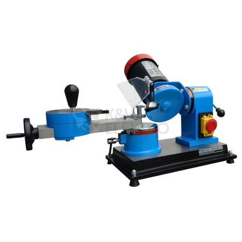 Kompaktní bruska, určená k přesnému ostření HM pilových kotoučů v podmínkách servisních dílen, specializovaných provozů apod. (-> pilové kotouče okružních/stolních/kolébkových pil s vnějšími průměry 80 - 700 mm/SK plátky). Funkce: • broušení čel i hřbetů pilových zubů pomocí polohovatelného brusného kotouče (± 30°) a opěrného stolku (+ 30/- 80°) • přesné navádění broušených kotoučů posuvnými saněmi Motor 370 W/P1 (-> druh provozu: S6 40 %), nouzový vypínač, 1,5 m napájecí kabel H05 VV-F. Konstrukce: robustní litinový podstavec, korpus brusky z oceli, upínací stolek se třemi centrovacími otvory, posuvné saně, gumové nožky (4). Vybavení: diamantový brusný kotouč (127,5 x 32 x 10 mm). Příslušenství: 8 adaptérů (-> pro broušení pilových kotoučů s různými vnitřními průměry: 16/18/20/25/25,4/28/30/35 mm). Celkové rozměry (d x š x v): 750 x 370 x 320 mm, hladina akustického výkonu LWA: 88 dB (A), elektrická ochranná třída: IP 20/I.