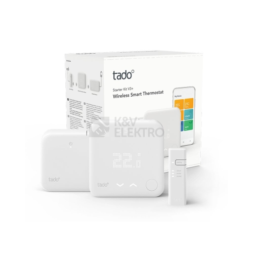 Sada tado° sestávající z bezdrátového přijímače, internet. rozhraní (Bridge), teplotního čidla, 3 ks baterií AAA. Detailní popis produktu Základní sadu bezdrátového chytrého termostatu potřebujete, pokud už doma máte buď termostat s bezdrátovým připojením ke kotli nebo vůbec žádný termostat. Inteligentní termostat komunikuje bezdrátově s kotlem prostřednictvím přijímače a s vnějším světem pomocí internetového rozhraní Bridge. To vám umožní ovládat váš topný systém na dálku odkudkoli pomocí mobilní aplikace tado°. Pomocí funkce sledování polohy vašeho mobilního telefonu (Geofencing) vám tado° připomene, abyste ztlumili topení, když odchází poslední osoba z domova, a zapnuli ho včas, než přijde první. Geofencing spolu s vyspělým algoritmem řízení teploty dokáže ušetřit až 31 % nákladů na vytápění. Do tado° Home můžete přidat až 25 zařízení a až 100 uživatelů. Základní sadu je možné snadno rozšiřovat o další prvky tado°. Chytré termostaty tado° mají certifikaci OpenTherm. To zaručuje kompatibilitu s kotli OpenTherm jakéhokoli výrobce. Spotřebiče OpenTherm nabízejí lepší účinnost a snížené dopady na životní prostředí, stejně jako snadnou instalaci svépomocí. Jak to funguje? V mobilní aplikaci tado° zvyšíte nebo snížíte teplotu. Internetové rozhraní (Bridge), které je připojeno k internetu přes router, přenáší tyto informace bezdrátově do vašeho chytrého teplotního čidla. Integrace do systémů Smart Home tado° můžete snadno začlenit do vaší chytré domácnosti. Můžete ho ovládat pomocí Apple HomeKit. Použijte Siri, Google Assistant nebo Amazon Echo k ovládání vytápění pomocí hlasových příkazů a vytvářejte aplety pomocí IFTTT pro propojení tado° s dalšími aplikacemi a chytrými zařízeními. tado° lze také integrovat do systému eNet Smart Home. Obsah balení Bezdrátové teplotní čidlo Bezdrátový přijímač Internetové rozhraní (Bridge) Kabely Spojovací materiál Napájecí zástrčky (redukce) Baterie AAA ##VIDEO:https://www.youtube.com/embed/l8MvM958c4I##