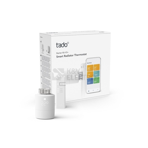 Sada tado° sestávající z termostat. hlavice, internetového rozhraní (Bridge), 2 AA baterií a příslušenství. Detailní popis produktu Základní sada pro objekty se společným kotlem nebo dálkovým topením, které používá radiátory. Je kompatibilní téměř se všemi termostatickými ventily radiátorů (TRV = Termostatic Radiator Valves) a lze ji namontovat na výšku i naležato. Chytrá termostatická hlavice je připojena bezdrátově s internetovým rozhraním Bridge. To vám umožní ovládat váš topný systém na dálku odkudkoli pomocí mobilní aplikace tado°. Termostatickou hlavici můžete rovněž ovládat ručně pomocí otočného knoflíku. Samozřejmostí je možnost deaktivace ručního ovládání v aplikaci (dětská pojistka). Pomocí funkce sledování polohy vašeho mobilního telefonu (Geofencing) vám tado° připomene, abyste ztlumili topení, když odchází poslední osoba z domova, a zapnuli ho včas, než přijde první. Geofencing spolu s vyspělým algoritmem řízení teploty dokáže ušetřit až 31 % nákladů na vytápění. Do tado° Home můžete přidat až 25 zařízení a až 100 uživatelů. Základní sadu je možné snadno rozšiřovat o další prvky tado° pro individuální ovládání místností, např. pro podlahové vytápění: Chytré termostaty tado° mají certifikaci OpenTherm. To zaručuje kompatibilitu s kotli OpenTherm jakéhokoli výrobce. Spotřebiče OpenTherm nabízejí lepší účinnost a snížené dopady na životní prostředí, stejně jako snadnou instalaci svépomocí. Jak to funguje? V mobilní aplikaci tado° zvyšíte nebo snížíte teplotu. Internetové rozhraní (Bridge), které je připojeno k internetu přes router, přenáší tyto informace bezdrátově do vaší chytré termostatické hlavice. Integrace do systémů Smart Home tado° můžete snadno začlenit do vaší chytré domácnosti. Můžete ho ovládat pomocí Apple HomeKit. Použijte Siri, Google Assistant nebo Amazon Echo k ovládání vytápění pomocí hlasových příkazů a vytvářejte aplety pomocí IFTTT pro propojení tado° s dalšími aplikacemi a chytrými zařízeními. tado° lze také integrovat do systému eNet Smart Home. Obsah balení Chytrá termostatická hlavice Internetové rozhraní (Bridge) Adaptéry na radiátor Kabely Spojovací materiál Napájecí zástrčky (redukce) Baterie AA