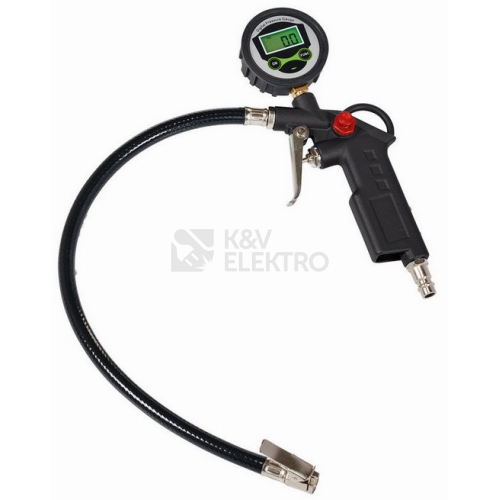Digitální měřič tlaku v pneumatikách od společnosti Einhell umožňuje snadné a přesné huštění pneumatik. Digitální čtyřmístný indikátor usnadňuje uživateli odečítání hodnoty tlaku při kontrole tlaku v pneumatikách. Pokud je tlak v pneumatikách příliš vysoký, je možné ho snížit pomocí integrovaného pojistného ventilu. Měřič tlaku v pneumatikách, který je určen pro tlaky do 13 barů, umožňuje výběr mezi čtyřmi jednotkami měření. Dodávaná rychlospojka je vhodná pro všechny standardní ventilky pneumatik.