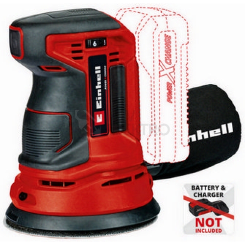 The Einhell cordless rotating sander TE-RS 18 Li - Solo provides the user with cordless and independent flexibility for work in the home, garage and workshed. The cordless rotating sander is a member of the Power X-Change series. The batteries with the high-grade lithium-ion cells can be used for all members of the Power X-Change family. Be it compact or soft materials: thanks to the speed electronics the tool can be adjusted to the particular material and application when performing work on the surfaces of wood, metal or stone-type structures. A high-precision finish and a high sanding performance can therefore be achieved thanks to the eccentric concept. For safe and comfortable operation there is a soft grip. For holding the abrasive paper securely there is a hook and loop fastening, which also enables the the paper to be exchanged with just a twist of the hand. An integrated dust extractor is included to keep the work area clean and free of dust, and an external dust extractor can also be connected. Complete with one piece of abrasive paper (P80). The battery and charger are available separately.