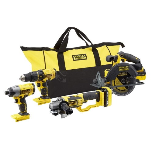 Kombo sada aku nářadí 18V Stanley FatMax SFMCK469M2 obsahující příklepovou vrtačku, rázový utahovák, kotoučovou pilu, úhlovou brusku, dva akumulátory 4,0Ah, nabíječku a brašnu. Aku příklepová vrtačka FMCD711 Dvourychlostní příklepová aku vrtačka pro vrtání do kovu, zdiva, dřeva i plastů Nová generace výkonnějších Li-Ion baterií V20 Maximální krouticí moment 50 Nm umožňuje většinu vrtacích a šroubovacích prací Určeno pro náročnější využití Příjemný pogumovaný povrch, nízká hmotnost a vysoká úroveň standartních funkcí pro efektivní práci a pohodlnou obsluhu Kapacita akumulátoru 1,5 Ah Napětí akumulátoru 18 V Typ akumulátoru Li-Ion Hmotnost 1,6 kg Krouticí moment 50 Nm Max. průměr vrtání do dřeva 35 mm Max. průměr vrtání do oceli 13 mm Max. průměr vrtání do zdiva 13 mm Otáčky na prázdno 0-350 / 0-1500 /min Počet příklepů 0 - 25500 /min Rozsah sklíčidla 1,5 - 13 mm Aku rázový utahovák SFMCF800 Robustní celokovová planetová převodovka Bezuhlíkový motor s vysokým výkonem a dlouhou dobou provozu na jedno nabití LED pracovní světlo pro lepší viditelnost při práci Vícekomponentní ergonomická rukojeť a tělo s pryžovým překrytím pro zvýšený komfort uživatele Háček pro zavěšení na opasek Upínací vnitřní šestihran 1/4" Indikátor stavu nabití aku baterie Počet úderů 3500/min Napětí 18V Volnoběžné otáčky 2800/min Maximální krouticí moment 170 Nm Aku okružní pilu SFMCS500 Aku okružní pila s pilovým kotoučem s tvrdokovovými zuby 165 x 16 mm Aretace vřetena Nastavení šikmých řezů až do 50° Vícekomponentní ergonomická rukojeť a tělo s pryžovým překrytím Možnost připojení k vysavači Indikátor stavu nabití aku baterie Napětí akumulátoru 18 V Průměr kotouče 165 mm Typ akumulátoru Li-Ion Hloubka řezu při 45° 45 mm Hloubka řezu při 90° 54 mm Hmotnost 3,4 kg Otáčky na prázdno 4000 /min Průměr otvoru kotouče 16 mm Aku úhlová bruska SFMCG400 Aku úhlová bruska s kotoučem 125mm a závitem vřetena M14 Ochranný kryt kotouče s beznářaďovým rychloupínáním Aretace vřetena Boční rukojeť nastavitelná do 3 poloh pro lepší ovladatelnost a bezpečnost při práci Vícekomponentní ergonomická rukojeť a tělo s pryžovým překrytím pro zvýšený komfort uživatele Indikátor stavu nabití aku baterie Upínání kotouče o průměru 125mm Uložení klíče uvnitř rukojeti Napětí akumulátoru 18 V Průměr kotouče 125 mm Typ akumulátoru Li-Ion Otáčky na prázdno 8500 /min Závit vřetena M14 Rozsah dodávky Aku příklepová vrtačka FMCD711 Aku rázový utahovák SFMCF800 Aku okružní pilu SFMCS500 Aku úhlová bruska SFMCG400 2x akumulátor 18V 4,0Ah Nabíječka Brašna ##VIDEO:https://www.youtube.com/embed/8O9y253NZPk##