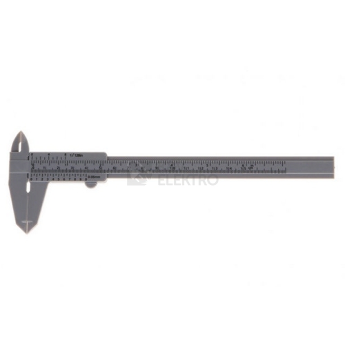 Plastové posuvné měřidlo 150mm, dělená stupnice v mm a palcích, pro orientační měření.