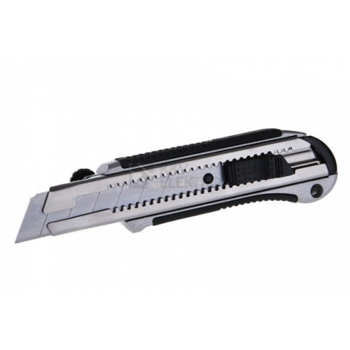 Profesionální odlamovací nůž, přesné zpracování - kvalitní materiály a ergonomie, odolný a přesný posuv s automatickou aretací, pojistná šroubková aretace, šířka čepele 25mm, baleno na blistru.