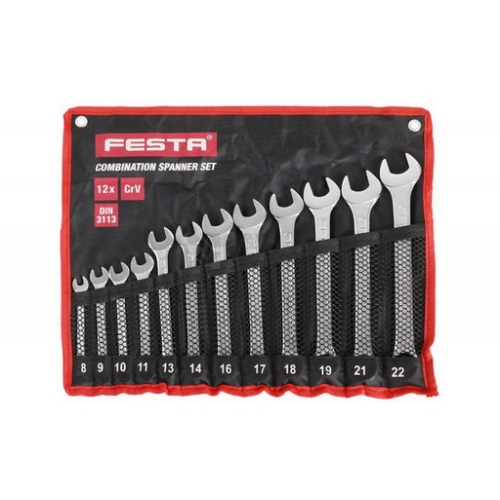 Sada očkoplochých klíčů FESTA je včetně organizéru, sešitého z velmi odolné a pevné tkaniny s oky pro zavěšení.  Nástrčné očkoploché klíče jsou vyrobeny kováním z kvalitní chromvanadiové oceli. Tato ocel je zušlechtěná na požadované vlastnosti a povrchově upravená matným tvrdochromem pro dosažení optimální povrchové tvrdosti a odolnosti vůči korozivním vlivům. Kvalitou, tvrdostí a přesností přesně odpovídají normě DIN3113.