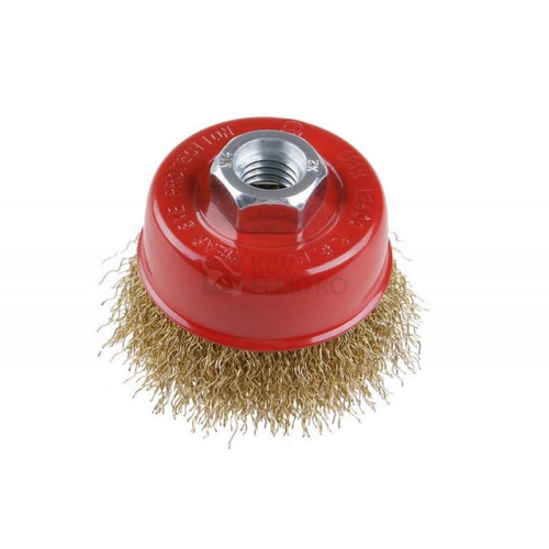 Rotační kartáč - hrnkový, kartáče FESTA zaručují kvalitní použité materiály i zpracování, vlnitý drát - pomosazený 0,3mm, průměr 65mm, uchycení M14*2, počet drátů 1350, délka drátů 23mm, maximální otáčky za min. 12500, použití : pro odstranění rzi, barvy, leštění
