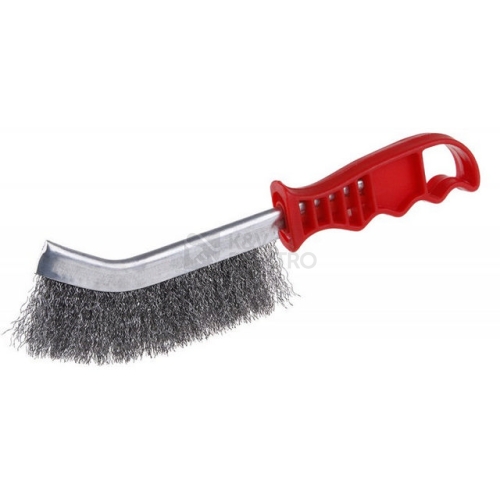 Ocelový kartáč - ruční, kovové tělo s plastovou ergonimicky tvarovanou rukojetí, vlnitý drát - pozinkovaný, počet drátů 1480, použití: k číštění železných kovů jako je ocel, litina, … .
