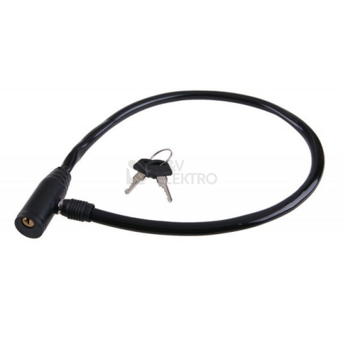 65 cm spirálové lanko z kvalitní oceli Ochranný plášt z PVC Průměr: 8mm Klíče: 2 Váha: 115g.