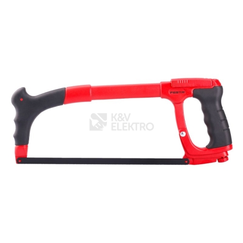 Hliníkový rám, měkčená gumová PTR rukojeť, 300mm ocelový plátek s kalenými zuby, plastový šroub pro rychlou výměnu plátku.