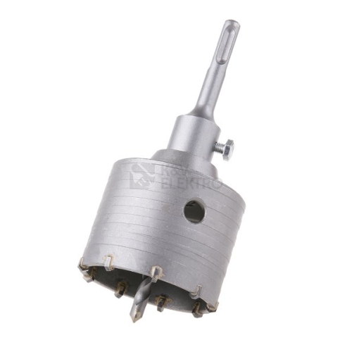 vykružovací / vrtací korunka s SK plátky a vodícím vrtákem uchycení SDS+ kvalitní SK plátky (SK - slinutý karbid), dlouhá životnost, rychlý prostup materiálem vodící - středící vrták usnadňuje práci a korunku přesně vede a drží na požadovaném místě pro vrtání větších průměrů do betonu, porobetonu, cihel a podobných zdících materiálů korunka není vhodná na vrtání železobetonu