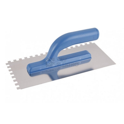 Hladítko nerezové zubové FESTA 280x130 mm, zub e8, s plastovou ručkou, tl.plechu 0,8 mm. Používá se zejména k nanášení lepidel pod obklady a dlažby, dále pak k nanášení stěrek, štuků, omítek, tmelů a dalších stavebních hmot. Hladítko nerezové zubové umožní natáhnout lepidlo či stavební hmotu v pruzích a výšce dle zubu hladítka.