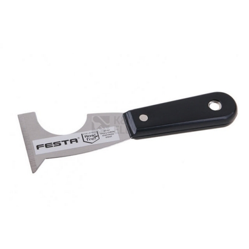 Špachtle malířská nerezová FESTA s plastovou ručkou. Nerezová čepel tloušťka 2,4 mm. Je užíván v malířství, natěračství. Je vhodná k odstraňování přebytečné barvy z válečku, škrabání staré omítky, řezání.