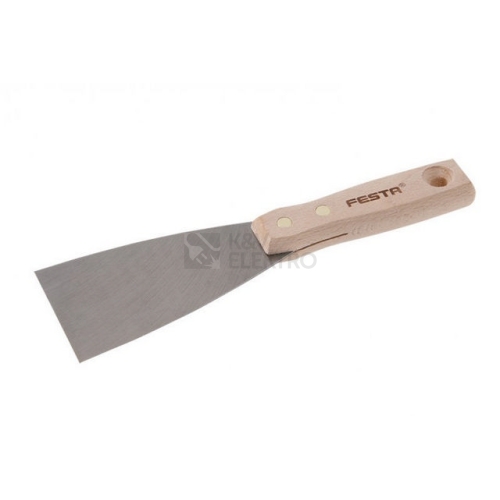 Malířská stěrka (špachtle) s broušeným ocelovým břitem a s dřevěnou nýtovanou rukojetí. Malířské stěrky se použivají pro zapravování děr, zeškrabavání přebytečného materiálu apod. Šířka břitu: 80mm